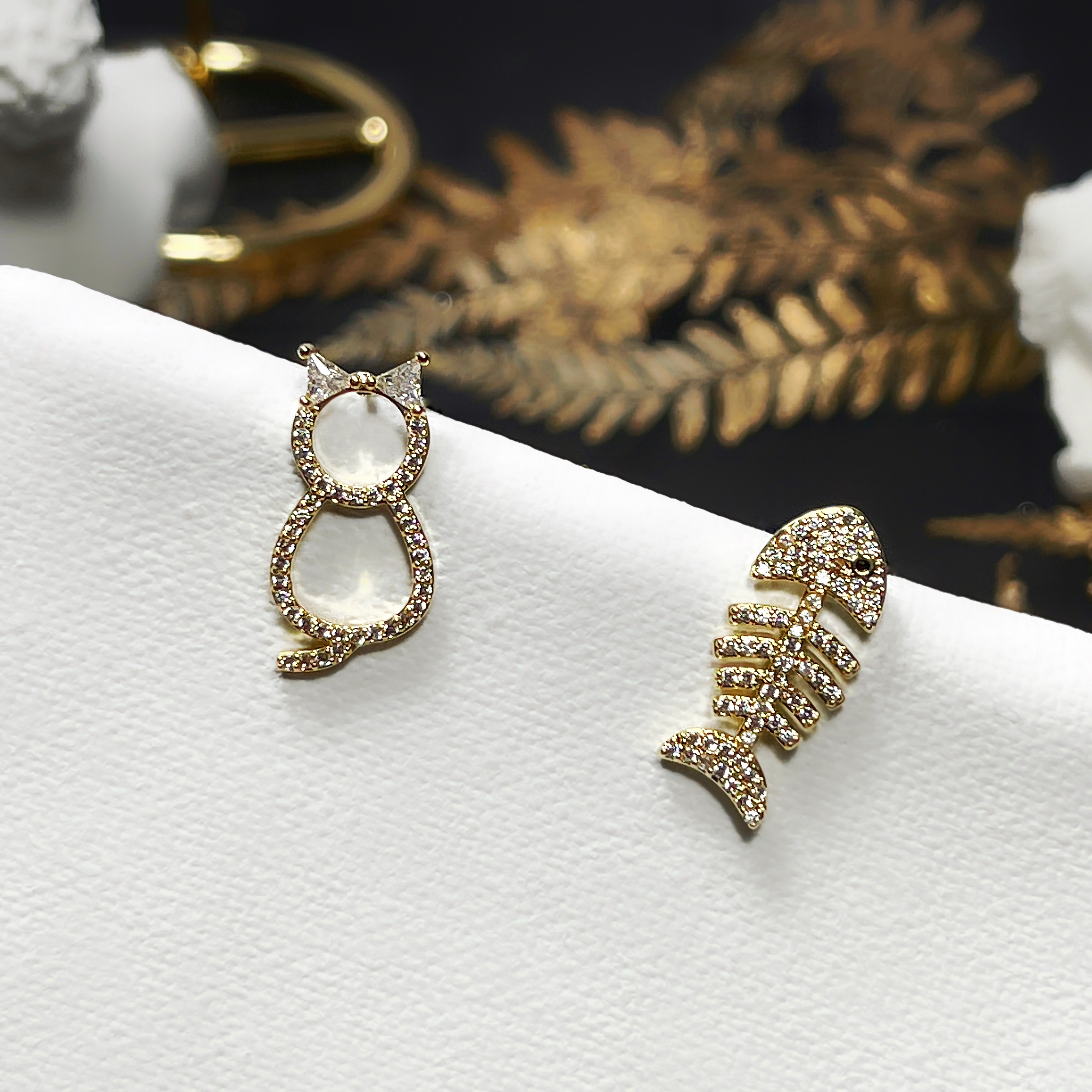【 淳飾 】銀針|貓咪遇見小魚 全鋯石 332507