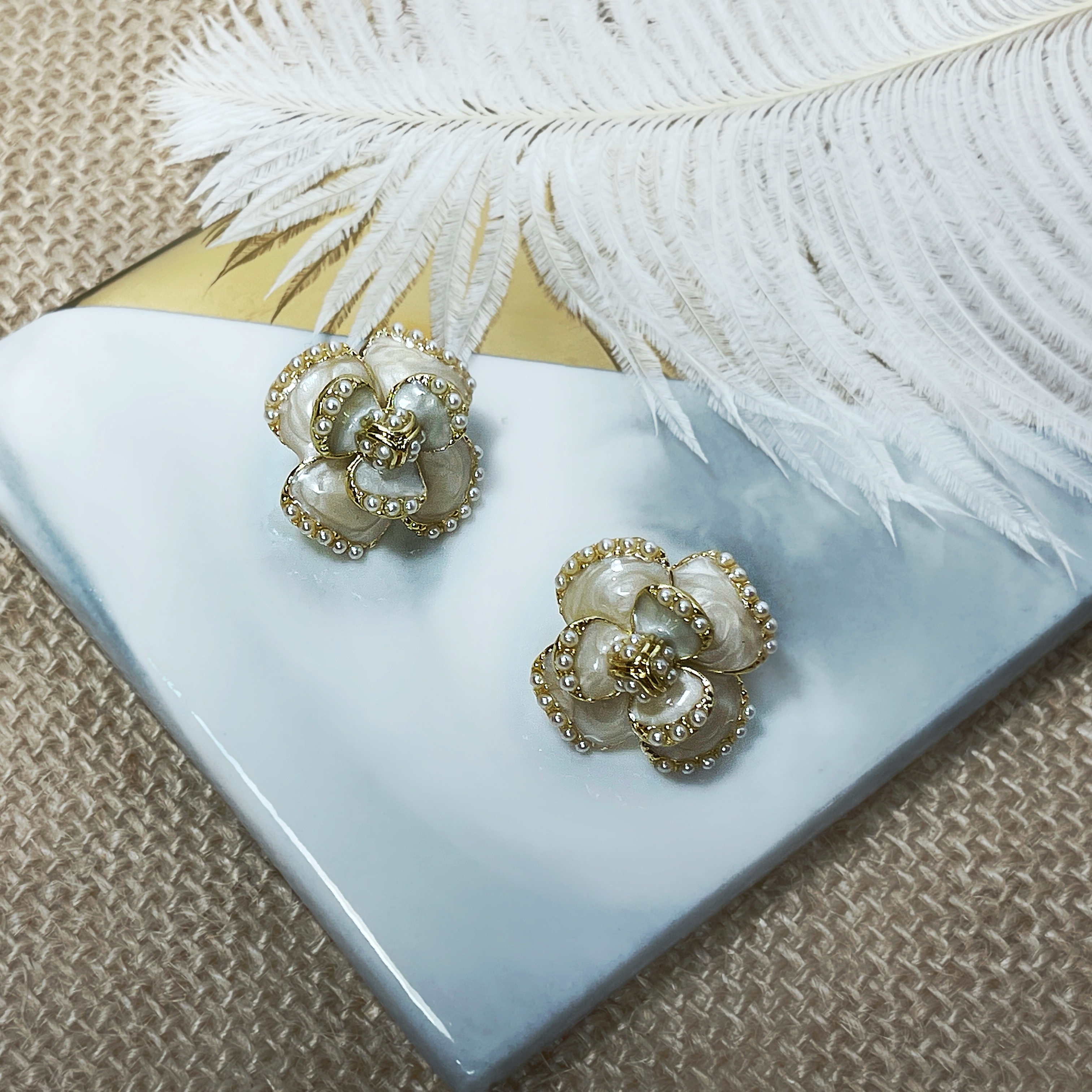 【 淳飾 】銀針|珐瑯珍珠山茶花 12161929